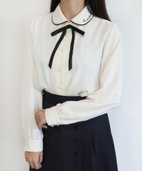 シンプルだけど可愛いブラウスです。 サラリと柔らかい生地で着心地めっちゃいいです。 リボンも取り外しできるし、リボン外しても襟元のロゴがオシャレで可愛い、使い回ししやすいブラウスです。 -