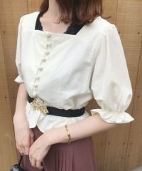 ウェストを絞ったシルエットと裾のフリルが他のブラウスとはまた違った着こなしができるのがポイントです♪ 私は、ロングのフレアースカートと合わせたレトロなコーデがお気に入り◎ 薄手でレーヨンが含まれた素材は柔らかい着心地なのでこの夏にかなり活躍しそうです!! 胸元が少し広めなので、気になる方はインナーにスクエアレース使いテレコキャミなどを一緒に合わせると安心ですよ。