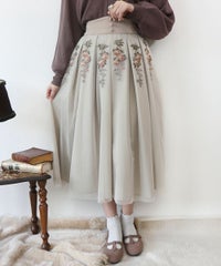 軽い素材感で、今からすぐ着られます。 且つブラウンの色味は秋らしくておしゃれ。 ローズ刺繍がほどよく華やかなのですが、トップスに柄ブラウスを合わせても馴染みます。 -