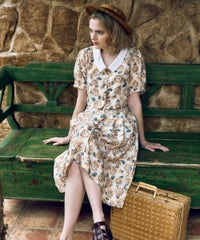 148cm細身ウェーブ体系。 ロングワンピースはベルト等ウェストマークしないとダボダボに見えてしまいがちなので迷ったのですが、買って正解でした! ラインがきれいなので、着るとすっきり見えます。 クラシカルで本当に素敵なデザインです。 -
